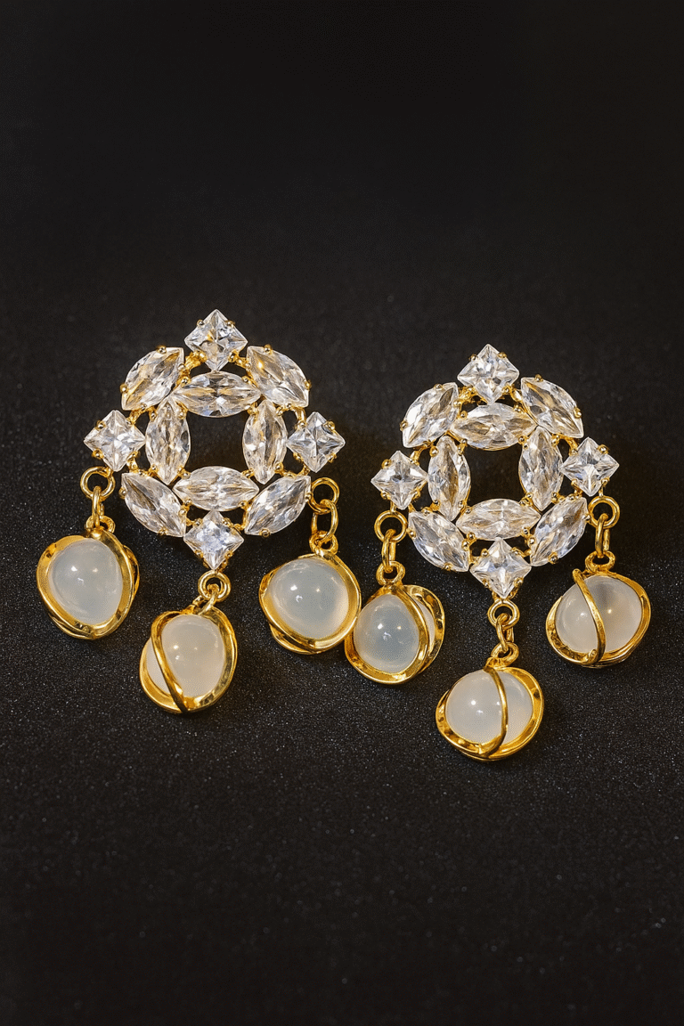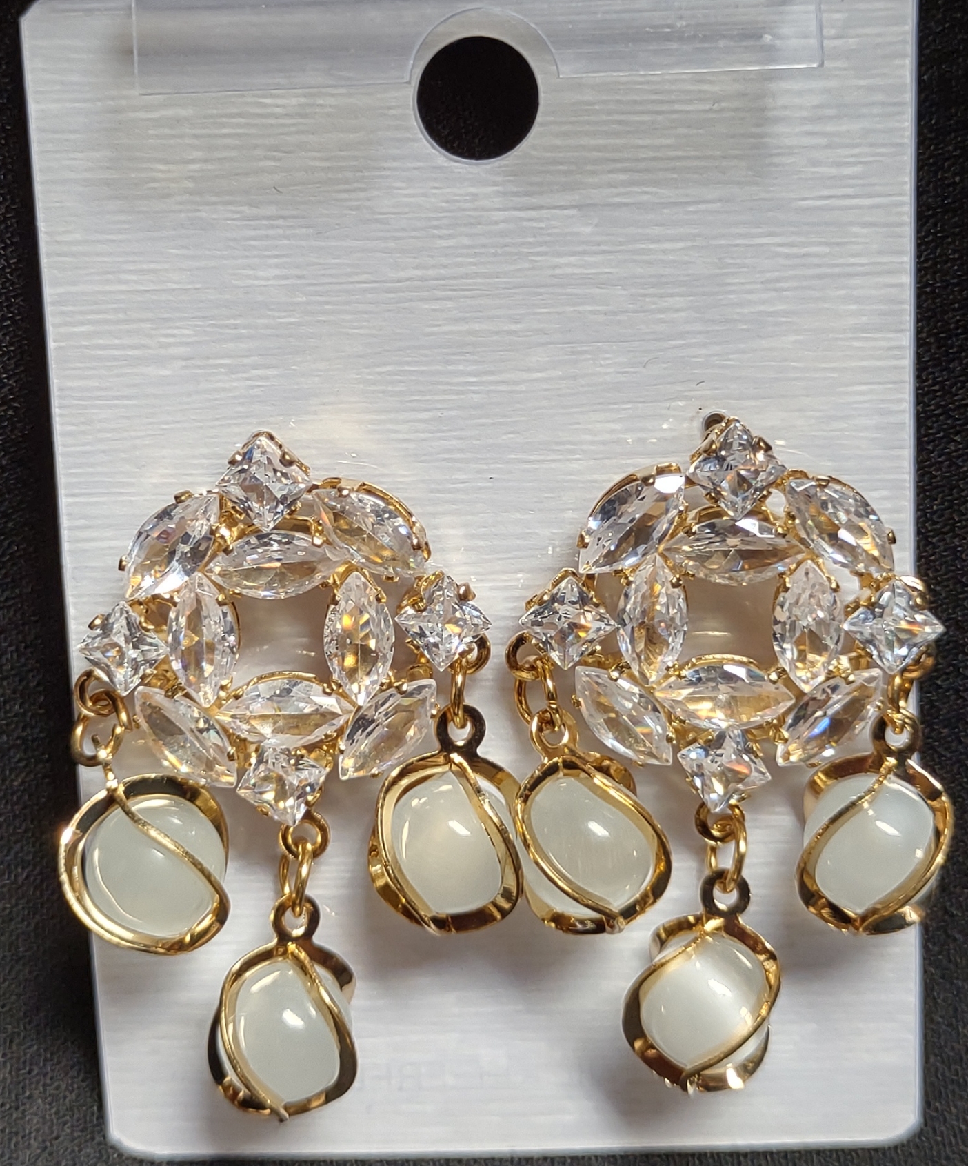 Adorned with clear crystals and have a gold-tone finish cluster of crystal at the top