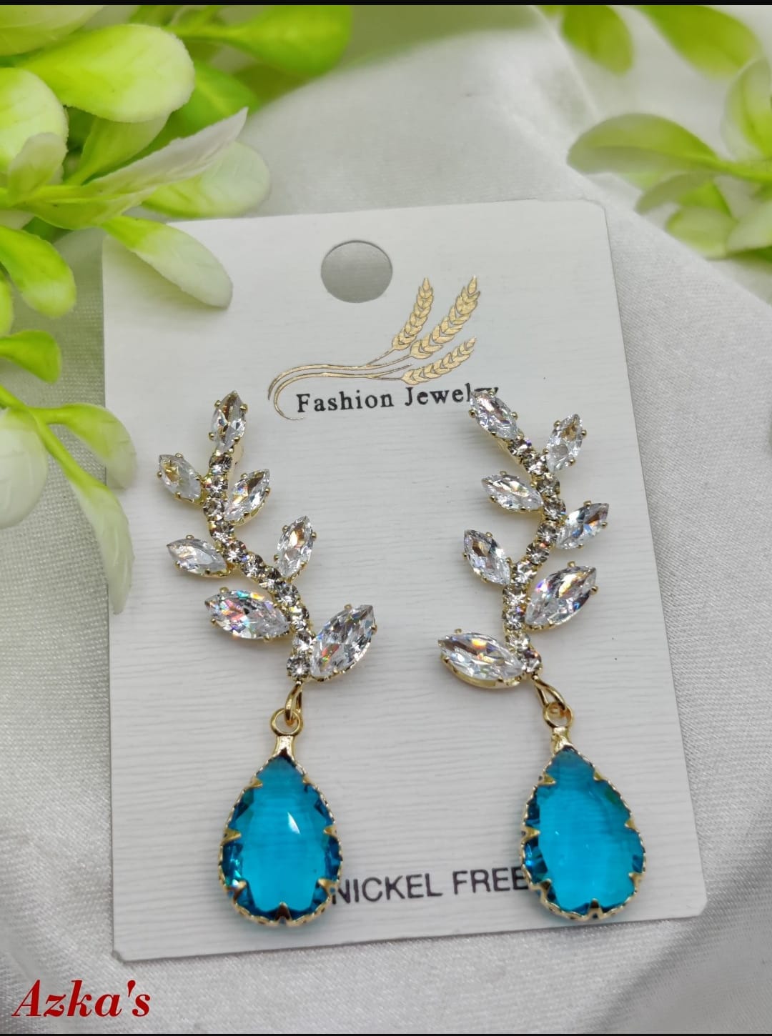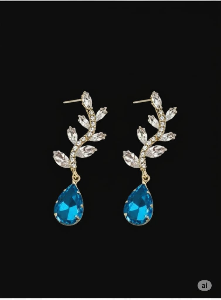 Imported Crystal Vine Drop (Earrings) With Blue Gemstone